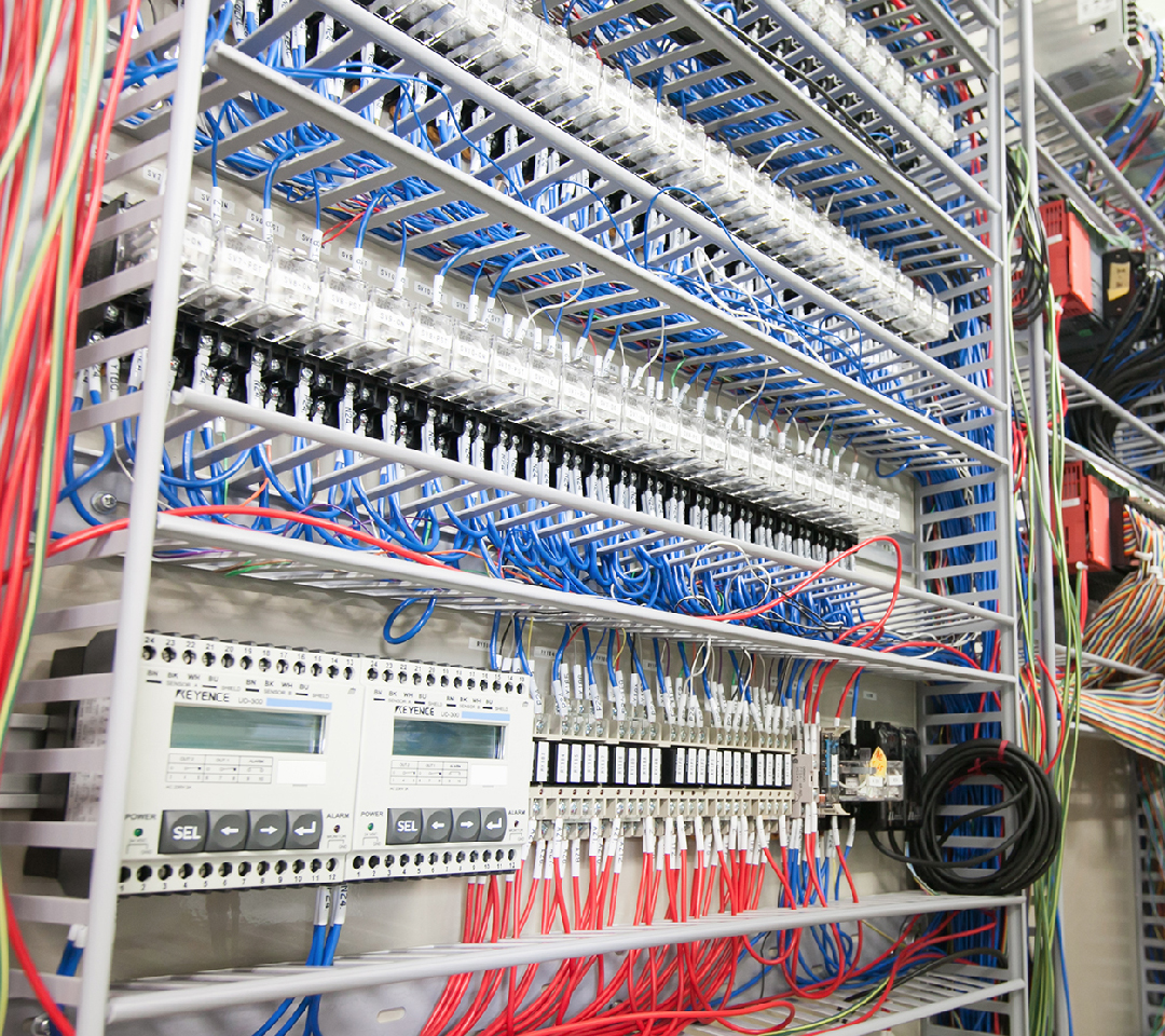 当社は、主に産業用機械の電気設計、制御盤製作、機内配線を行っております。電気設計に始まり、制御盤の製作、本機配線、試運転&調整まで一貫して自社にて対応でき、その技術は産業用機械を始め、工作機械、高速プレス機、搬送機など、あらゆる分野のメーカーから信頼をいただいております。そんな当社だからこそお勧めする製品をご提供できればと思います。